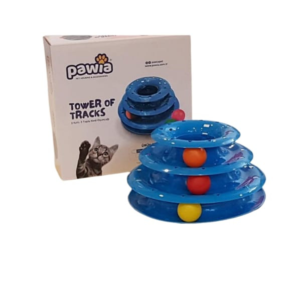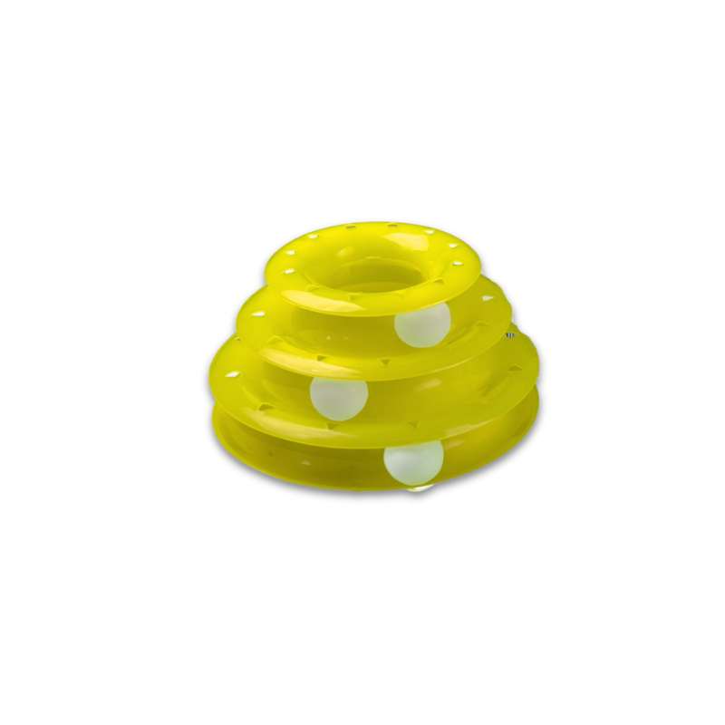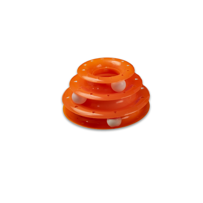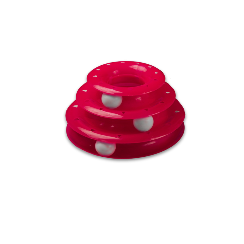 Design & Structure: The toy consists of three stacked tracks, each with a ball that rolls around when batted by a cat. The round design encourages continuous play as the balls move unpredictably, keeping the cat intrigued.