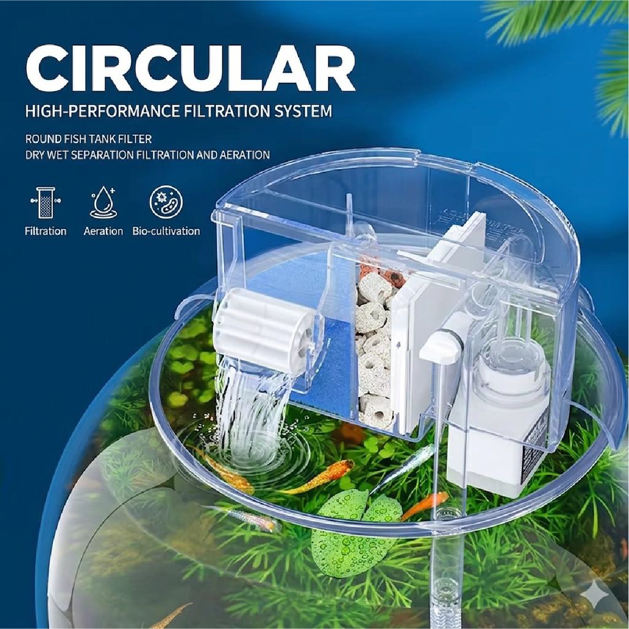 Keep your aquarium water crystal clear and healthy with this advanced round top filter. Designed for optimal performance, it provides powerful filtration while maintaining a sleek and compact look for your tank.