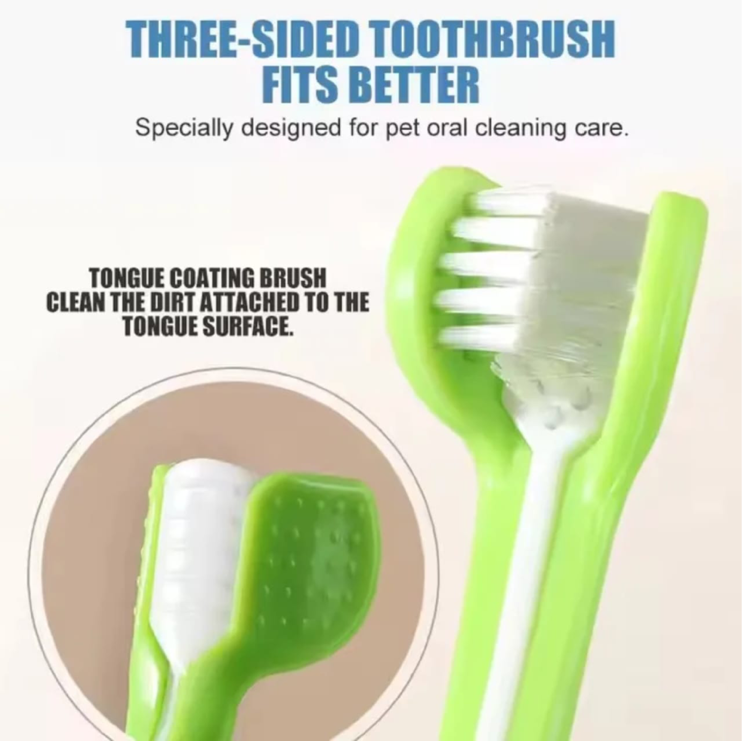 Keep your pet’s oral health in top shape with this Triple Head Pet Toothbrush. Designed for dogs and cats of all sizes, this toothbrush features a unique 3-sided bristle head that cleans teeth from multiple angles simultaneously, ensuring a thorough and efficient clean. The ergonomic, non-slip handle provides a secure grip for easy brushing, while the vibrant colors make grooming time fun and bright. A perfect tool to help reduce plaque, tartar buildup, and promote fresher breath.