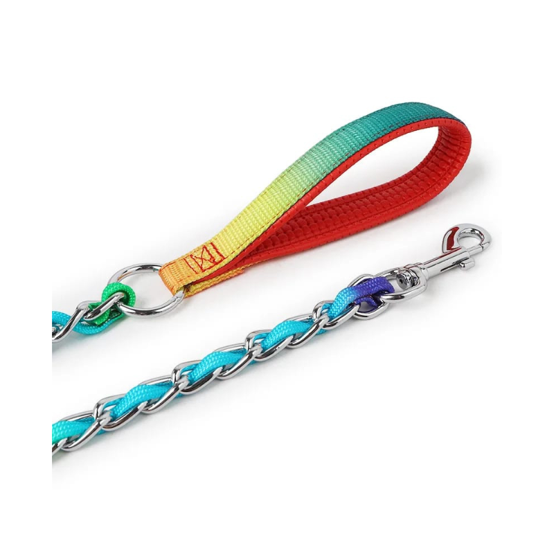 A Nylon & Chain Leash is a versatile and durable pet accessory designed for comfort, style, and reliability. It combines the lightweight flexibility of nylon with the strength of a metal chain, making it a popular choice for pet owners who value both functionality and design.