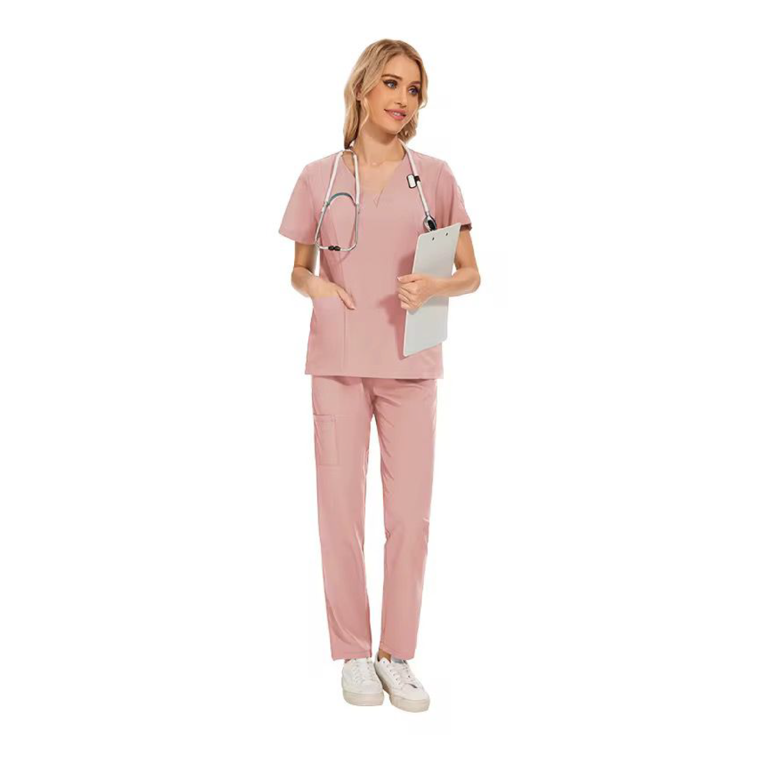 Upgrade your grooming attire with this stylish and functional pet grooming dress set, designed for comfort, convenience, and a professional appearance. This 2-piece set includes a V-neck short-sleeve top and matching pants made from lightweight, breathable, and easy-care fabric. Whether you're a pet groomer, veterinary technician, or salon professional, this uniform offers the flexibility and durability needed for a busy workday.