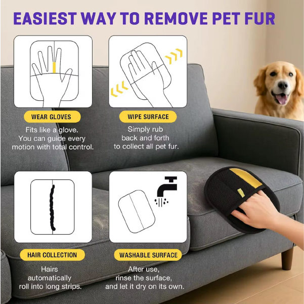 Make pet grooming and cleaning effortless with this reusable pet hair removal glove. Designed for comfort and efficiency, it easily lifts loose fur, dust, and lint from your pet or furniture.